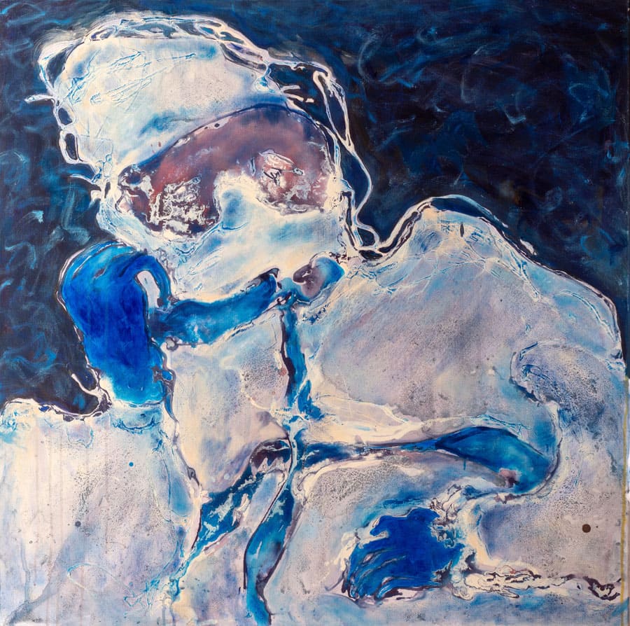 Daphne and Apollo in troubled times | tehnică mixtă pe pânză | 120x100 cm