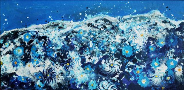 Forget me not | tehnică mixtă pe pânză | 20x60 cm