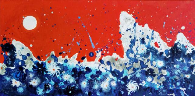 Burning Sun | tehnică mixtă pe pânză | 20x60 cm