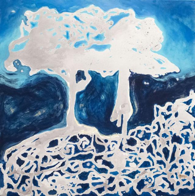 Rădăcini scufundate | tehnică mixtă pe pânză | 100x100 cm
