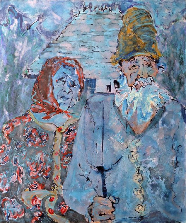 Daphne and Apollo in troubled times | tehnică mixtă pe pânză | 120x100 cm