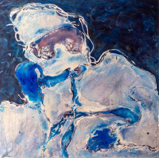 Contemporary Sisyphus (after Van Gogh's Dr Gachet) | tehnică mixtă pe pânză |100x100 cm