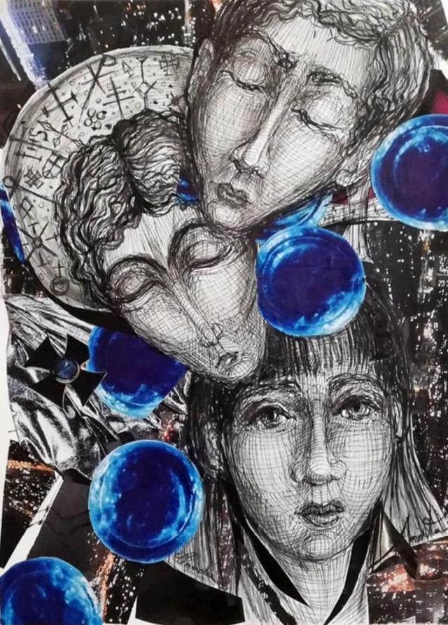 Sacrul în cotidian | colaj-tuș | 22x30 cm